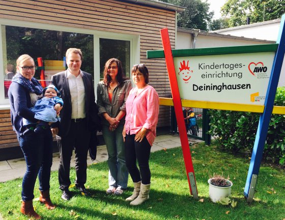 Der heimische Bundestagsabgeordnete Frank Schwabe besuchte im Rahmen der „Dialogwoche Kita-Qualität“ die Kindertagesstätte der Arbeiterwohlfahrt in Deininghausen. Barbara Schwede-Bönte, Leiterin der Kita, und die Erzieherin Marlies Büssow informierten den Abgeordneten während eines Rundgangs über die Einrichtung und über die Arbeitsbedingungen der Erzieherinnen und Erzieher.