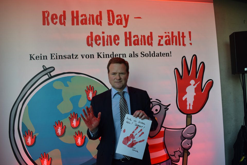 Seit 2002 erinnert der „Red Hand Day“ an das Schicksal von Kindersoldaten. Trotz bereits erzielter Erfolge gibt es noch immer etwa 250 000 Kindersoldaten weltweit.