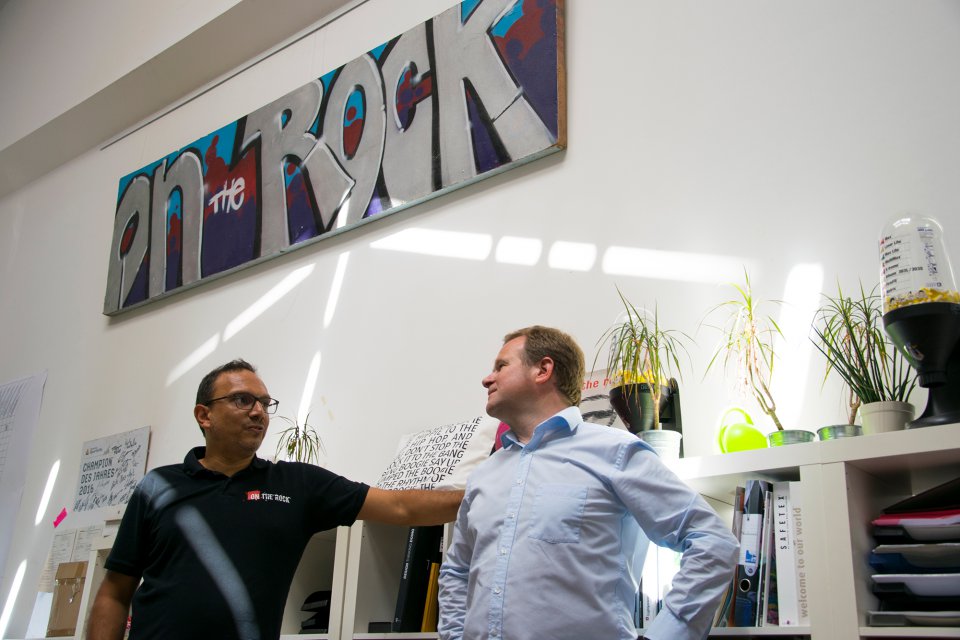 Einen halben Arbeitstag begleitete der heimische Bundestagsabgeordnete Frank Schwabe (SPD) den Chef der Waltroper Event Agentur „On the Rock“ Winni Petersmann. Ziel war es sich über die Arbeitsweise dieses hoch innovativen Unternehmens zu informieren.