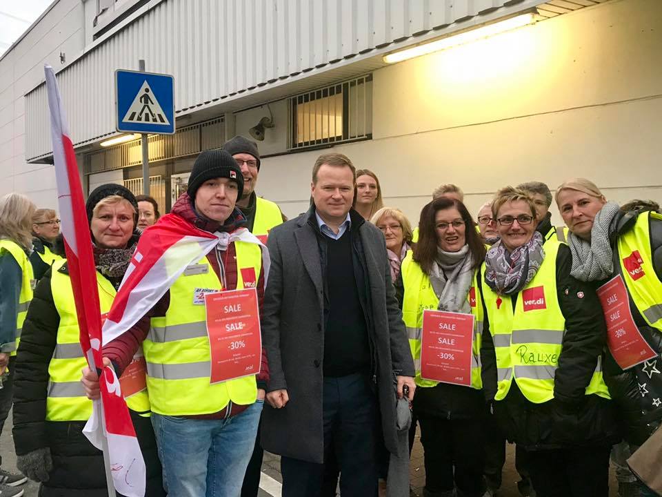 Frank Schwabe unterstützt die Beschäftigten bei Real
