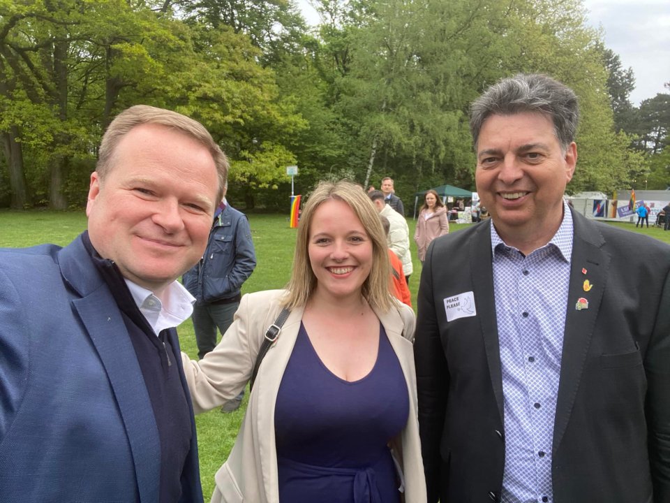 Auf Einladung des heimischen Bundestagsabgeordneten Frank Schwabe besuchte Bundesarbeitsminister Hubertus Heil am 1. Mai das Kulturvolksfest rund um das Ruhrfestspielhaus in Recklinghausen. Beim gemeinsamen Rundgang über den Grünen Hügel informierten sich Schwabe und Heil gemeinsam mit der SPD-Landtagskandidatin Anna Teresa Kavena an den vielen Ständen der Gewerkschaften, Vereine und Verbände.