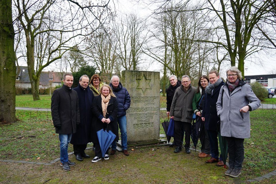 Den Abschluss des Besuchs in Waltrop bildete ein Rundgang auf dem jüdischen Friedhof, auf dem sich auch ein Gedenkstein für die jüdischen Opfer befindet, die in der Zeit von 1933 bis 1945 verfolgt, deportiert und ermordet wurden.