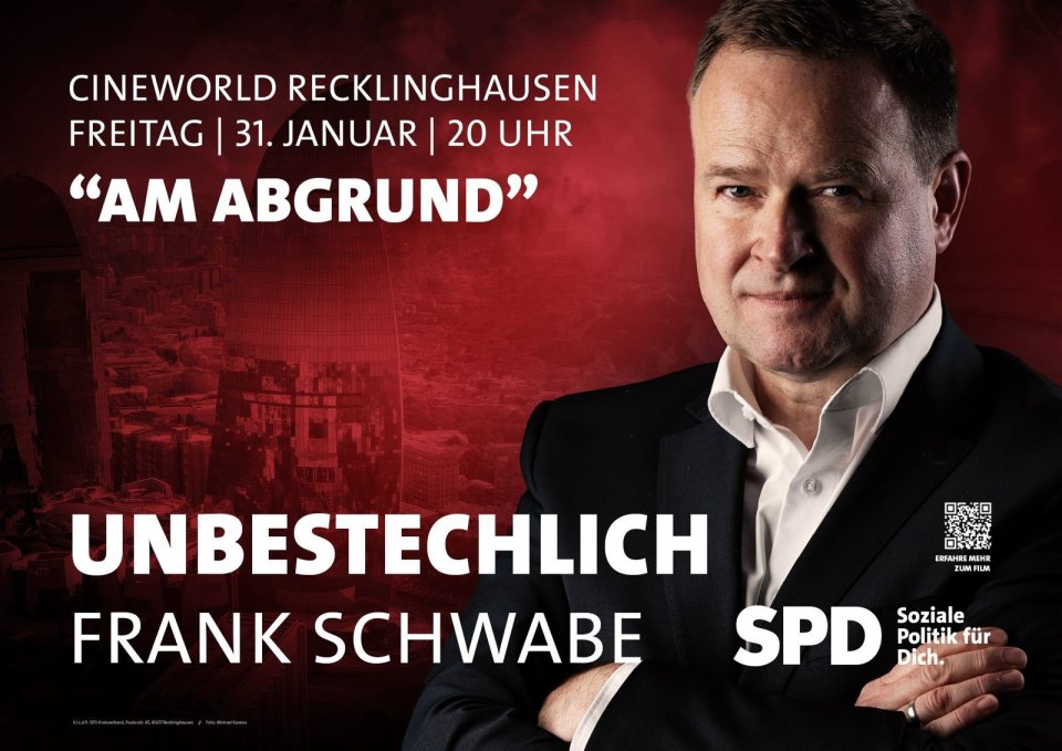 Gezeigt wird der Film auch im Rahmen einer Sondervorstellung am Freitag, den 31. Januar ab 20 Uhr im Cineworld-Kinocenter in Recklinghausen. Tickets gibt es kostenlos unter www.unbestechlich-frankschwabe.de oder telefonisch unter 02361/4900089.