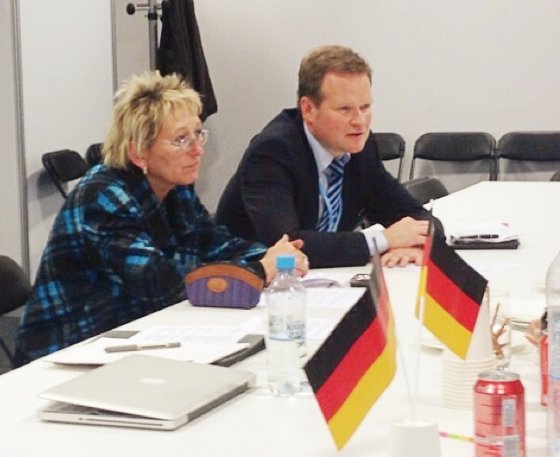 Um 13 Uhr beim Treffen mit Regierung von El Salvador. Interessant für den Außenminister Jaime Miranda Flamenco und den Umweltminister Hernan Rosa Chavez waren vor allem deutschen deutschen Erfahrungen mit der Energiewende. Doch auch das Thema "loss and damages" ist für das Land wichtig. El Slavador gehört zu den vom Klimawandel am stärksten betroffenen Länder der Welt. Sinnflutartige Regenfälle, Erdrutsche und Dürren gehören leider zum Alltag des Landes.