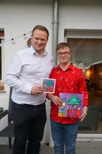 Das Motiv für die diesjährige Weihnachtskarte des heimischen Bundestagsabgeordneten Frank Schwabe (SPD) hat Valentin Kinkeldei entworfen. Valentin ist ein junger Künstler aus Castrop-Rauxel, der mit Down-Syndrom geboren wurde. Beide haben sich vor einigen Jahren kennen und schätzen gelernt. „Von Beginn an war ich von Valentins Mut, Engagement und Kreativität beeindruckt", so Frank Schwabe.